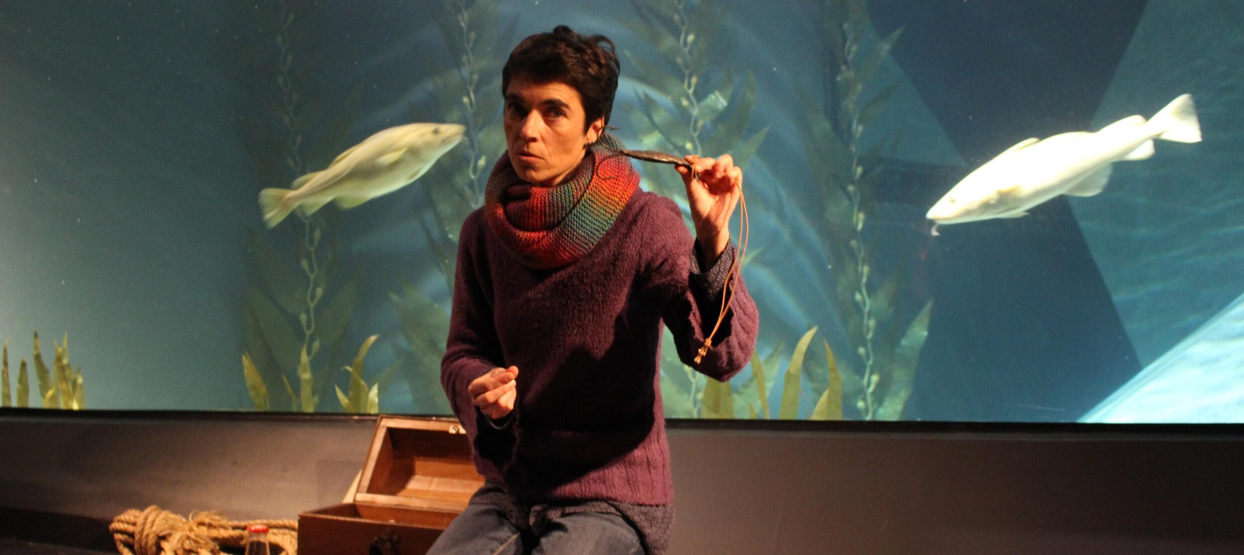Desde que há memória que o homem se aventura por agruras e intempéries para retirar um precioso alimento do mar: o peixe. Nos últimos tempos descobriu-se que esse mesmo homem alimenta um monstro terrível que vive no mar e que ameça o peixe que pesca. Um monstro feito de redes e palhinhas, cotonetes e garrafas, sacos e pneus e muito mais. Este monstro é perigoso, dissimulado, consegue disfarçar-se, repartir-se e juntar-se para fugir mas sobretudo ameça a qualidade da água e a sobrevivência de muitos animais. Conseguiremos nós combatê-lo? Tu, eu e o oceano de mãos dadas e olhos abertos? Nesta visita faremos o percurso desde a pesca da faina maior até ao aquário para falar deste desafio dos dias de hoje, do agora.