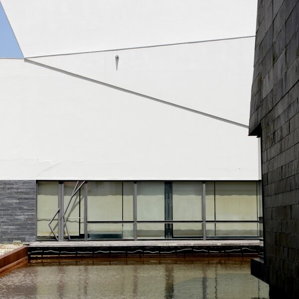 Neste corpo ancoraram-se os novos volumes: a grande Sala da Ria, com o seu enorme pé direito; a “torre” negra central, das exposições temporárias, enigmática, flutuante na água; o corpo administrativo, a biblioteca e a cafetaria.